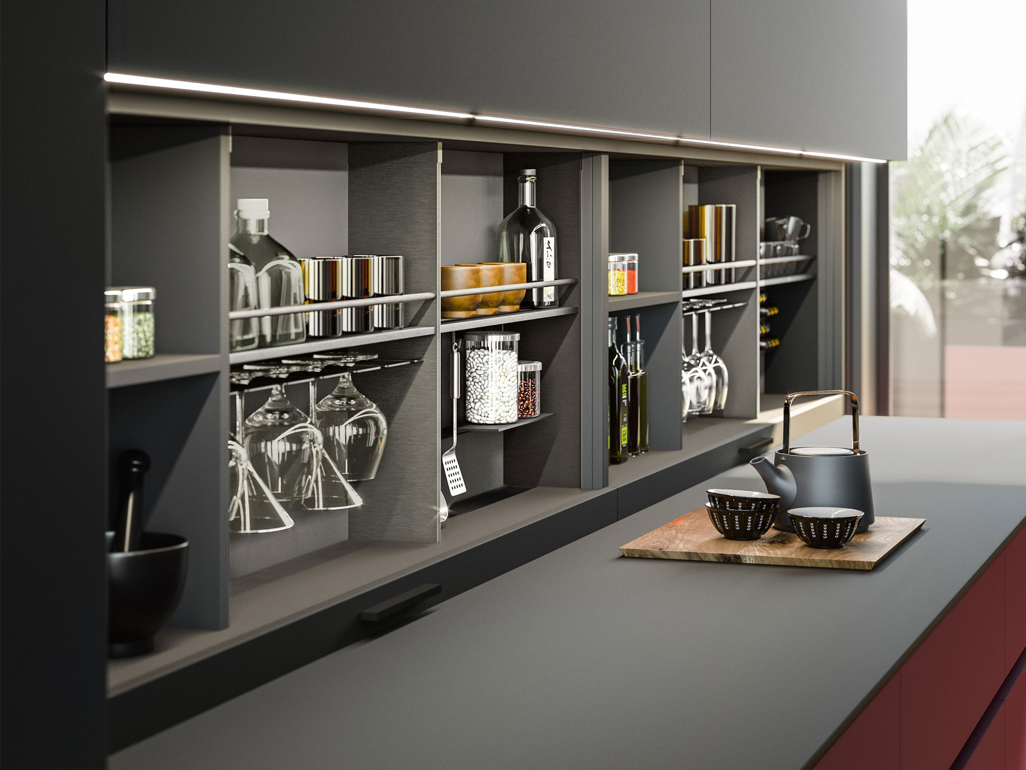 -En 8 finitions FENIX, porte ép.22mm en aggloméré « hydrofuge » revêtu en FENIX avec chants en FENIX.
